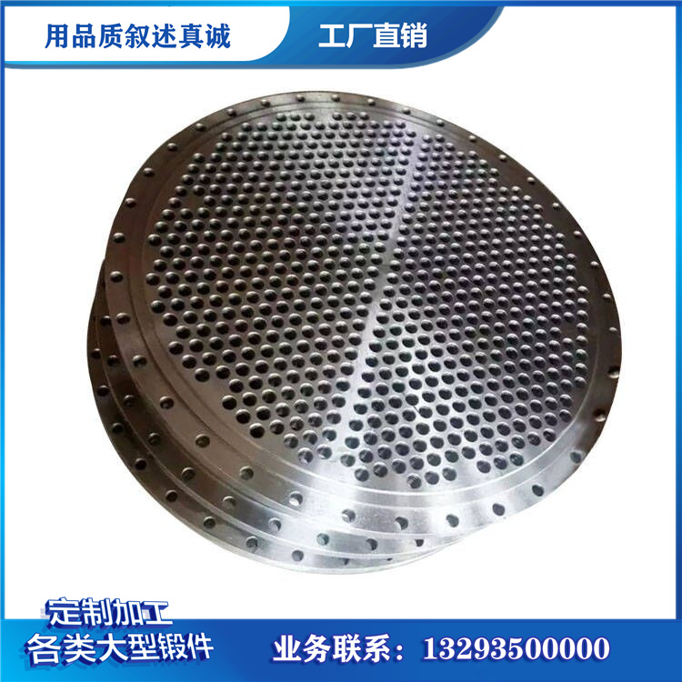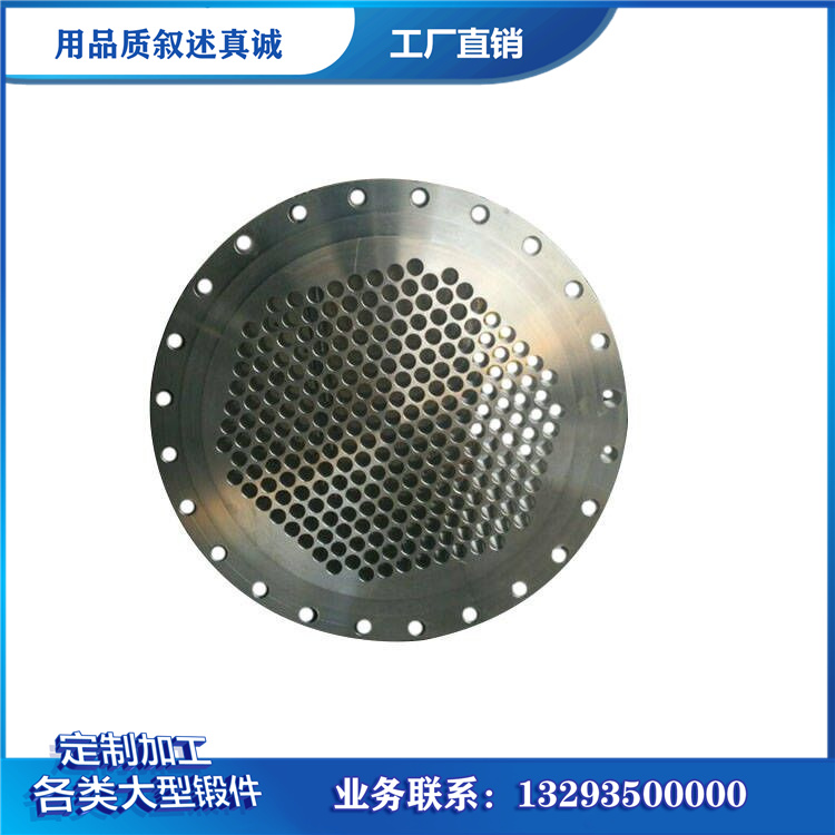 产品品名: 大口径管板 锻造依据:来图加工 锻造性质: 锻件 加工 锻造材料:按客户要求 锻造精度:尺寸公差可以达到0.01MM 锻造设备:高精度CNC加工中心、数控车床,铣床等配套加